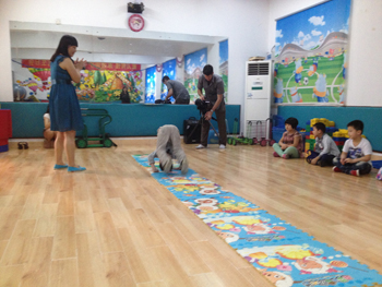 經過前期的網絡及電話溝通,于2013年5月27日星期一中午,英國BBC駐上海記者一行下飛機后就匆匆感到鄭州啟樂園感統訓練學前班。進入機構后,靳校長熱情的招待了“洋記者”,并簡單的向記者們介紹了啟樂園8年來的發展經歷。鄭州市啟樂園成立于2005年5月,是河南省首家感統訓練中心——小海龜感統訓練中心。于2008年開設幼小銜接學前班常規課程。是一家從事幼小銜接學前班,感覺統合、學習能力、注意力集中訓練的專業機構。尤其介紹了啟樂園的課程設置:兩套課程體系,分常規課程和特色課程。常規課程分基礎知識儲備類教材和北師大錢志亮教授研發的兒童《入學成熟水平》專業教材;特色課程分感統訓練、學習能力提升和注意力集中訓練。既有知識儲備又有能力培養,科學、專業、符合兒童發展規律和當前需求。
