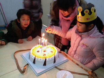 2013年元月18日,農(nóng)歷臘月初七,是鄭州市啟樂園幼小銜接學(xué)前班王語微小朋友6歲的生日。今天一大早爸爸媽媽為小語微訂做了蛋糕中午前送到了啟樂園學(xué)前班班主任的手里,因為前一天老師和家長都已經(jīng)商量好了,要語微和同學(xué)們過一個難忘快樂的6歲生日。這不聽說語微姐姐過生日、吃蛋糕了,很多蒙氏班的弟弟妹妹們也來祝賀,也來吃蛋糕了,哈哈。